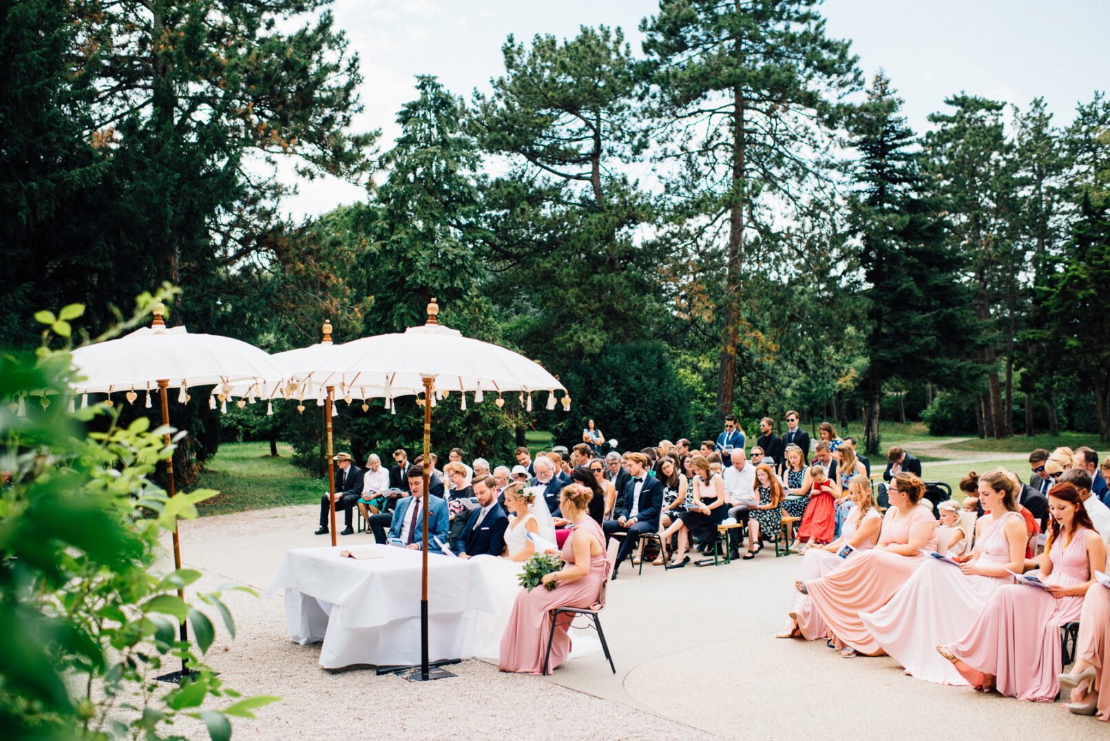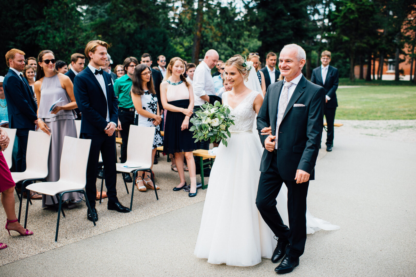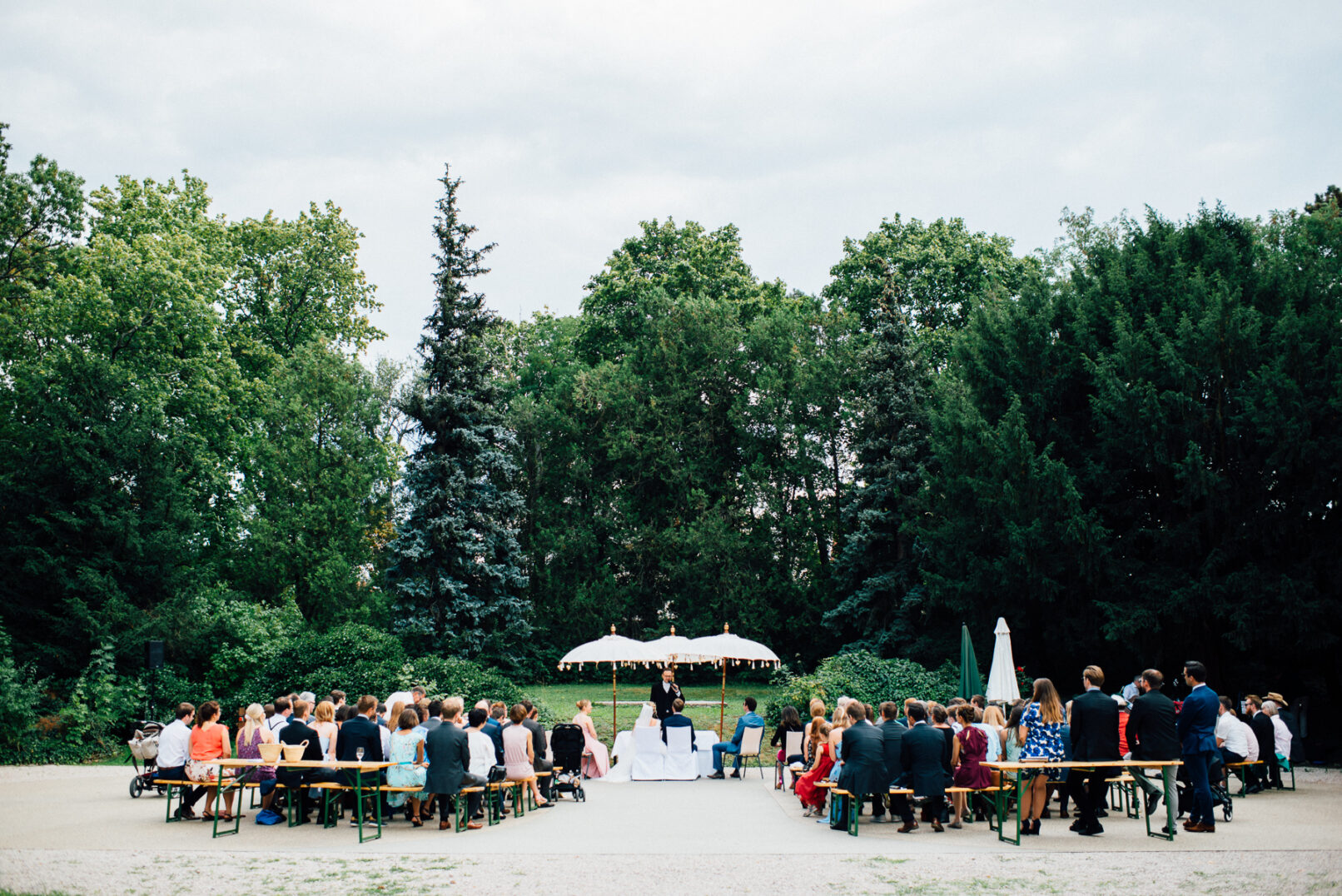 Die Trauung fand im weitläufigen Garten des Gabriums statt. Umringt von Bäumen, Wiesen, Freunden und Familie haben sich Kai und Julia das Ja-Wort gegeben.