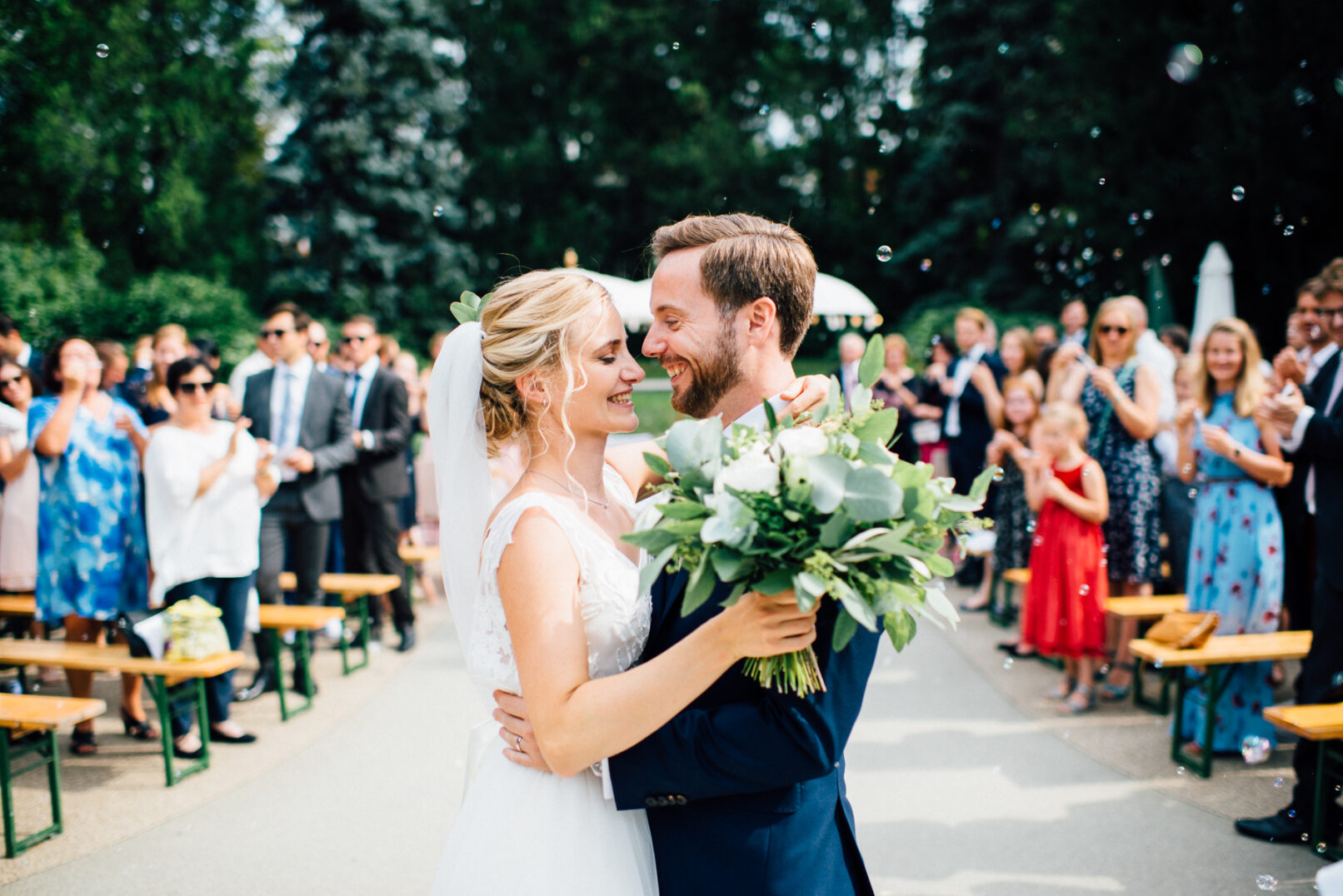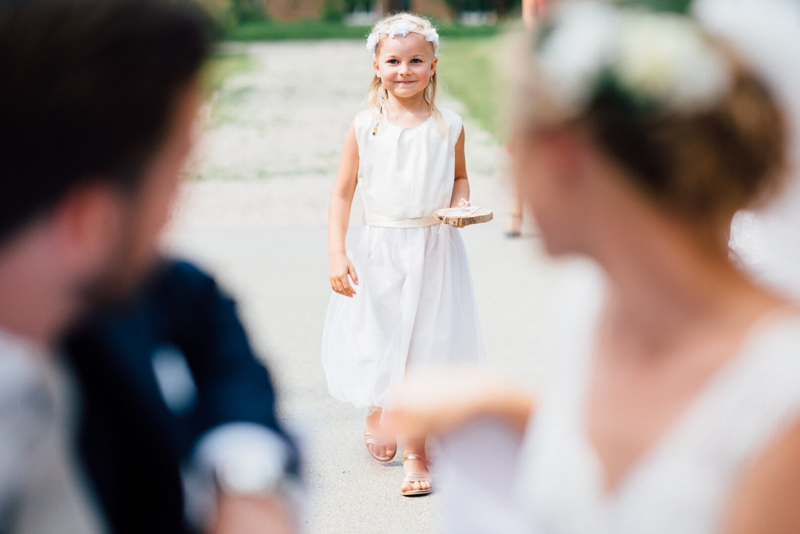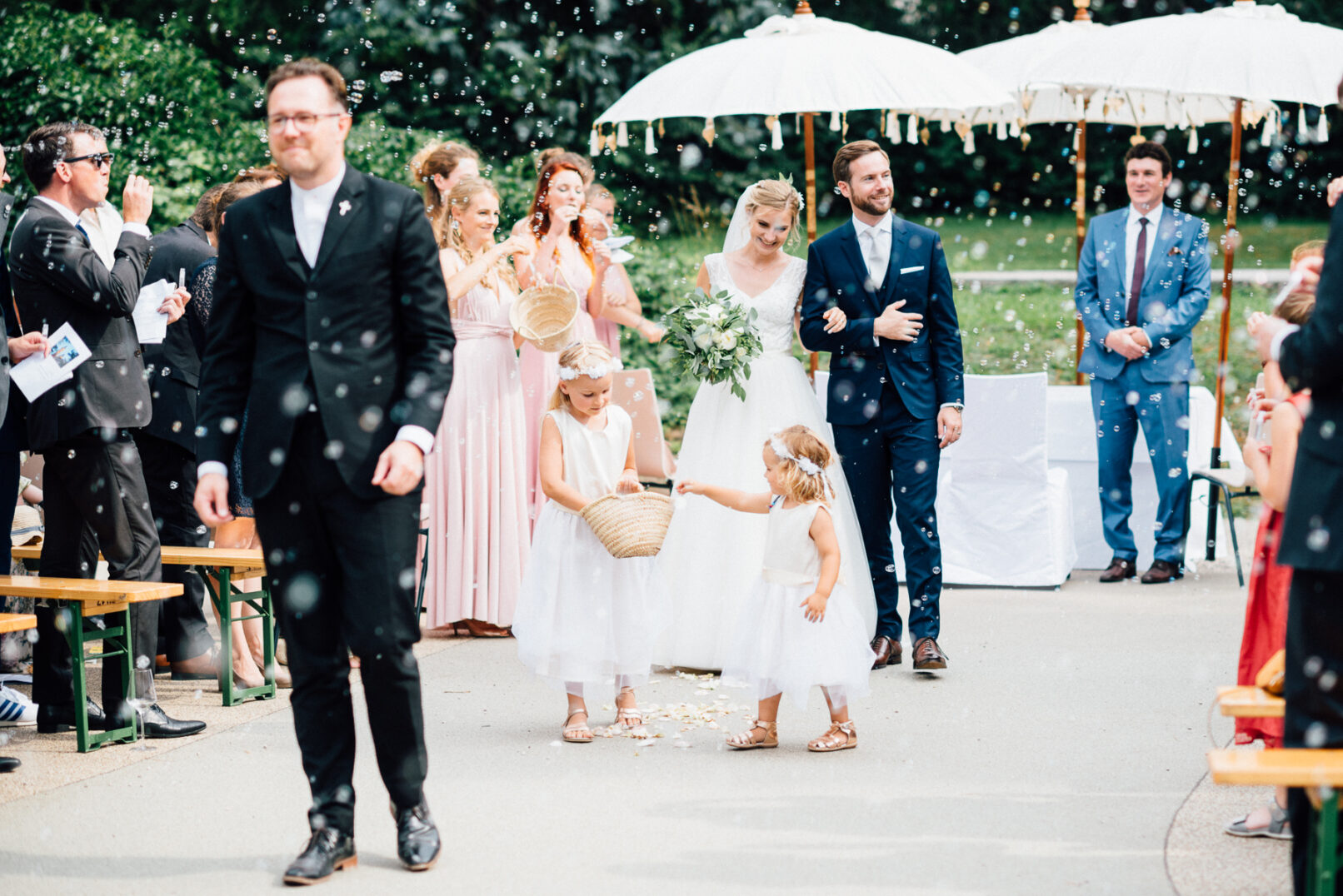Die Trauung fand im weitläufigen Garten des Gabriums statt. Umringt von Bäumen, Wiesen, Freunden und Familie haben sich Kai und Julia das Ja-Wort gegeben.