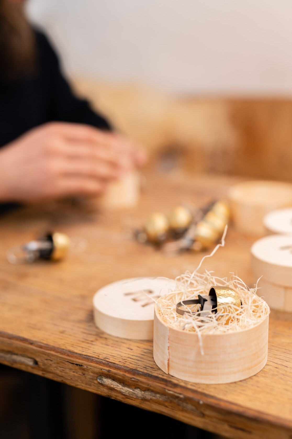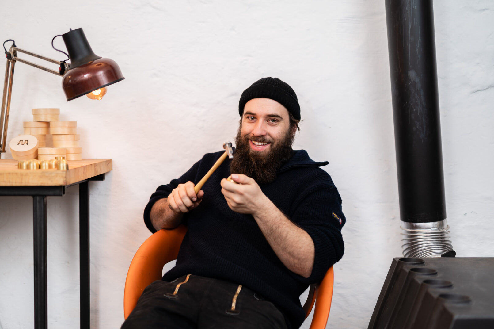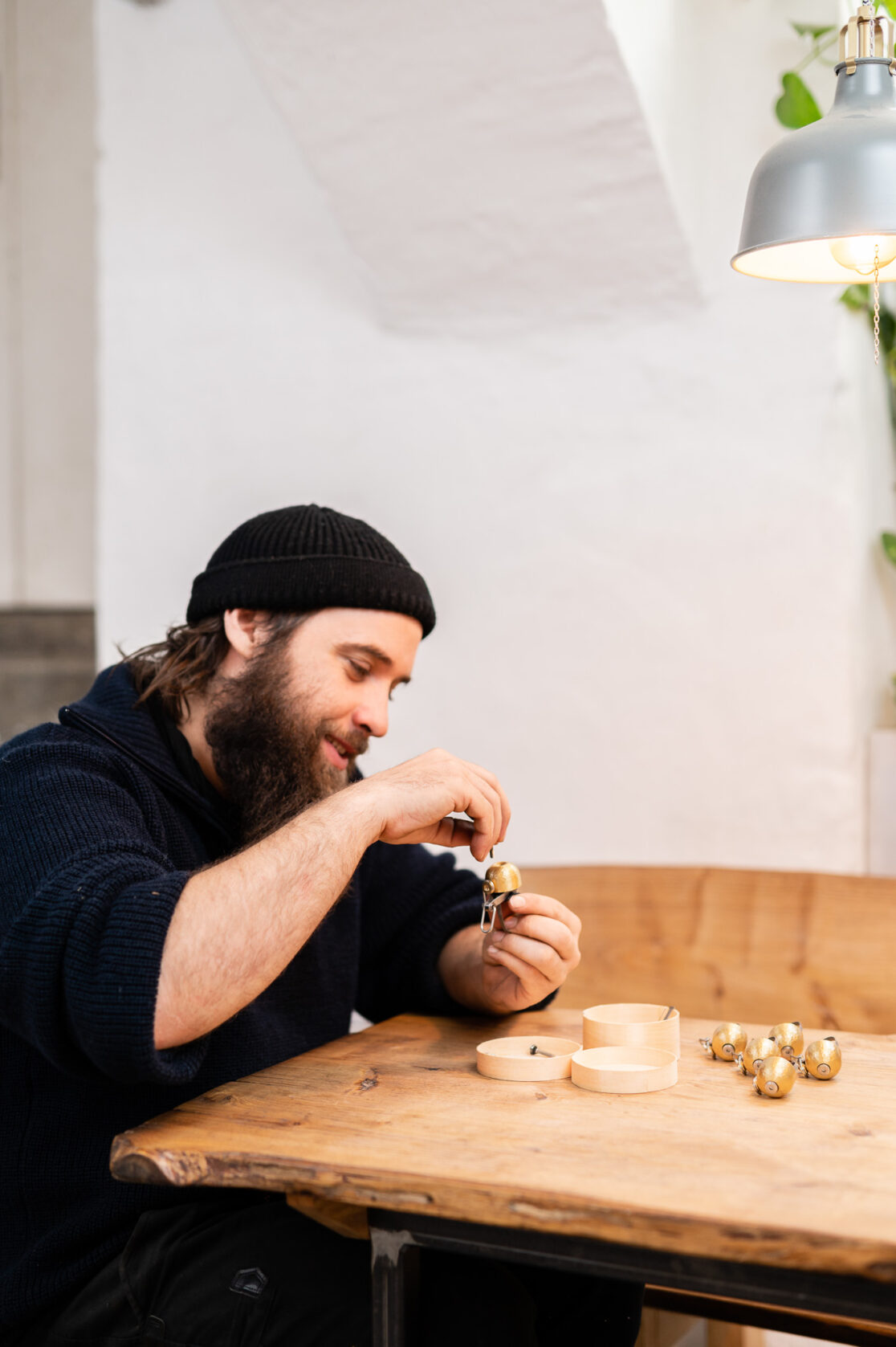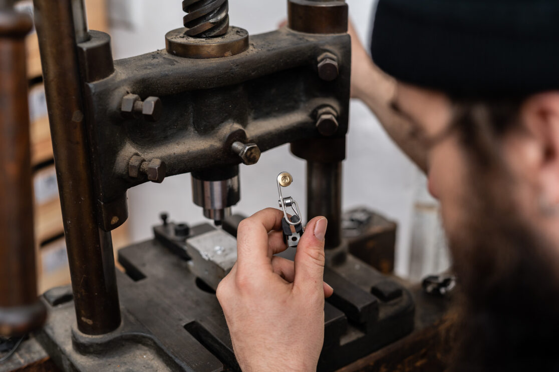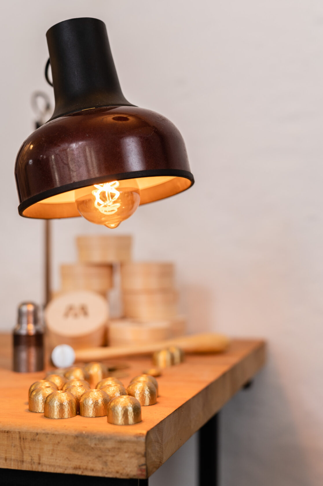 Neben den Produktfotos im Studio, bei welchen die Aufmerksamkeit auf das Material Messing sowie die hand-gehämmerte Struktur der Klingel gelegt wurde, sind auch Fotos vom Produktionsprozess in der Werkstatt entstanden.
