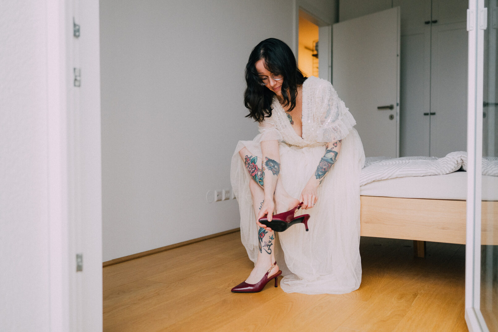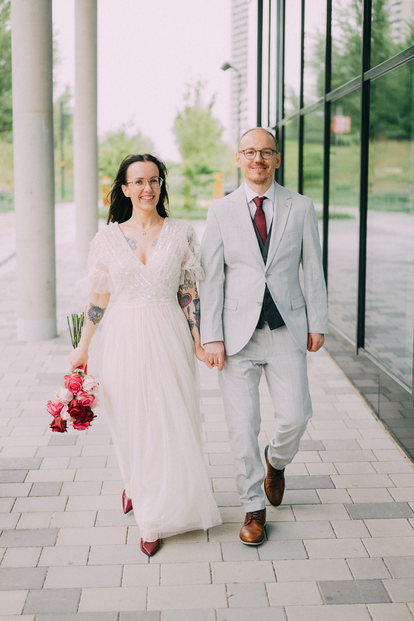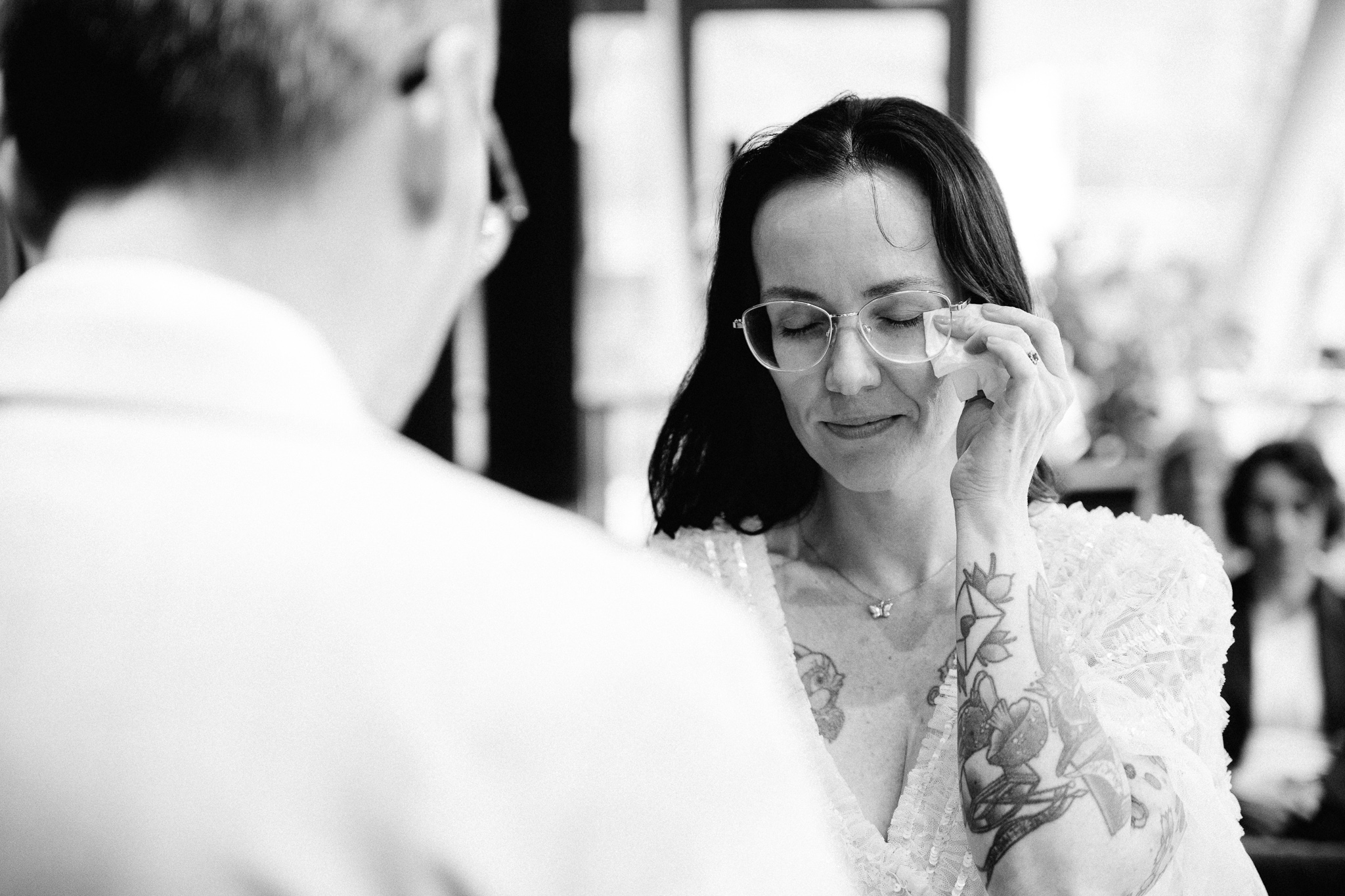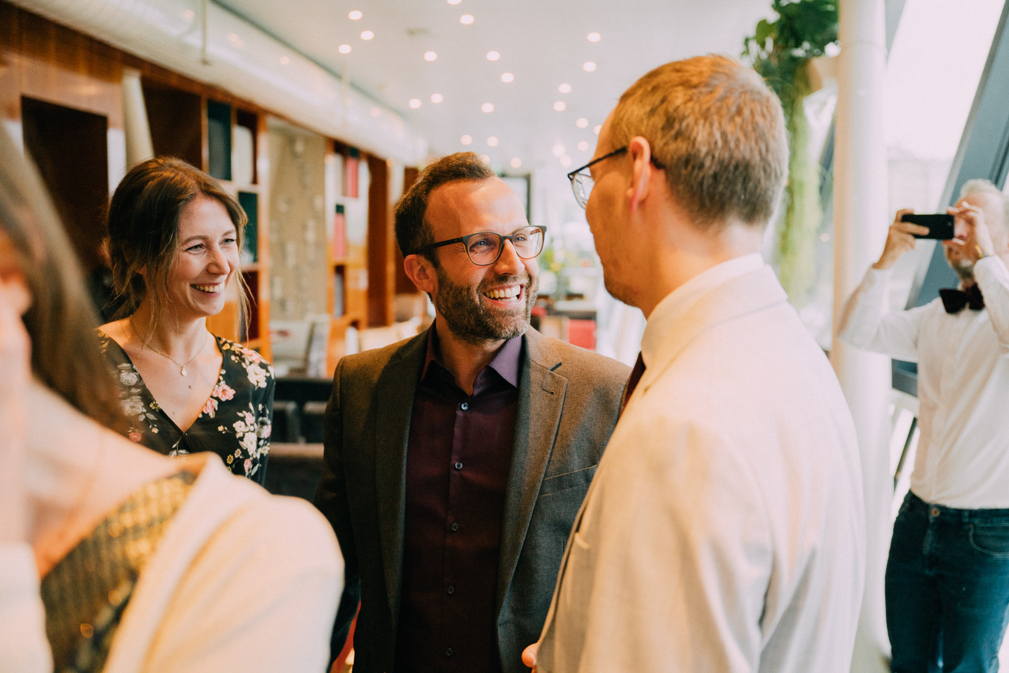 Der Tag mit P & G hat bei ihren gemeinsamen Vorbereitungen in ihrer Wohnung begonnen, bevor wir bei erfrischenden Temperaturen zu einer kurzen Fotorunde in ihrem Grätzel gestartet sind. Nachdem alle wieder trocken und warm waren, gings zur standesamtlichen Trauung mit Freunden und Familie ins Motto am Fluss, noch Zentraler kann man in Wien eigentlich gar nicht heiraten. Frisch verheiratet durfte die Hochzeitsgesellschaft dann mit einer privaten Bim (Straßenbahn für die nicht-Wiener) zum Dinner fahren, aber sehr am besten selbst…..