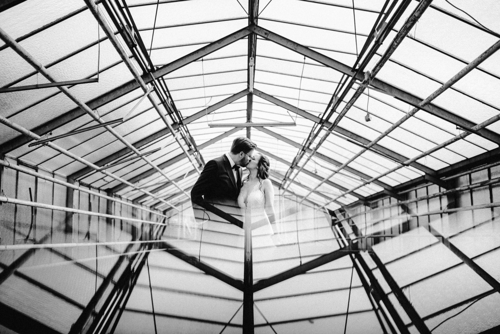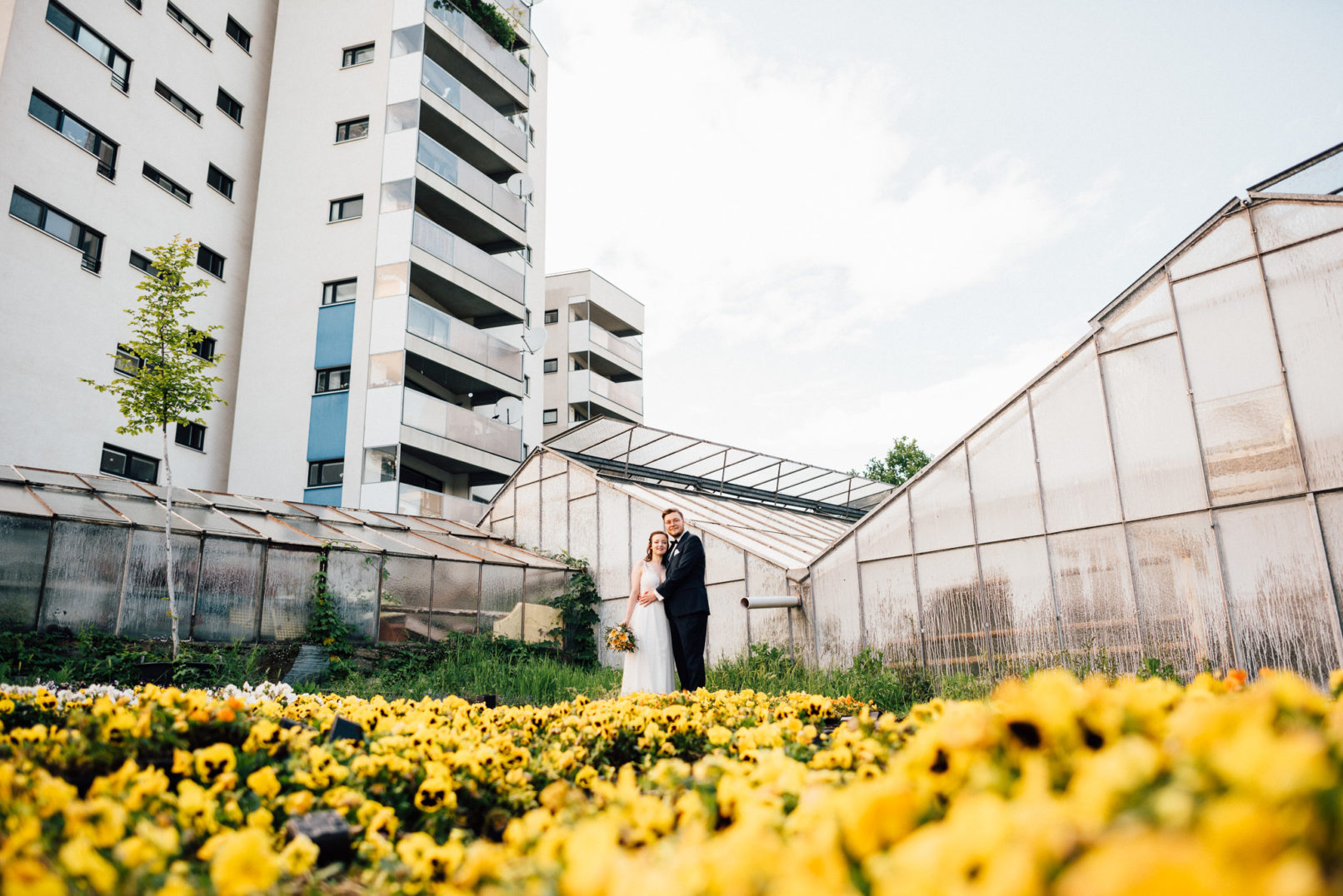 Nach der Trauzeremonie im Garten ging es mit dem Brautpaar noch zu einer nahen Gärtnerei, deren Kulisse einen tollen Hintergrund für das Paarshooting bot.